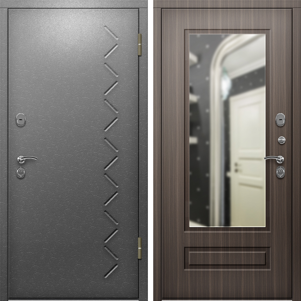Металлические двери с отделкой порошковое напыление + МДФ по внешней отделке