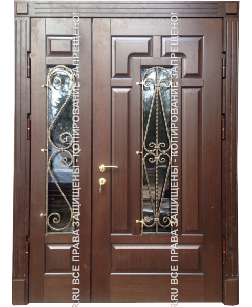 Дверь железная входная уличная МДФ с ковкой/стеклом 3084