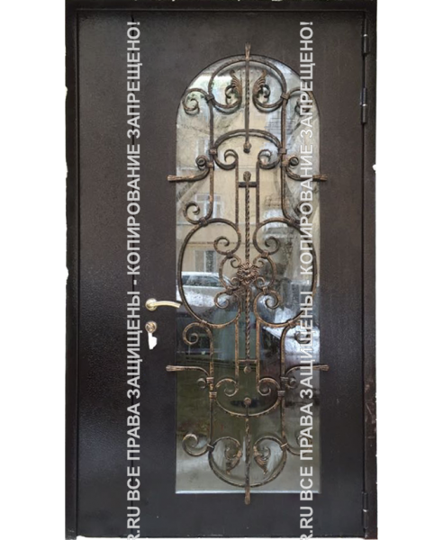 Стальная входная уличная дверь Порошок с ковкой/стеклом 1130
