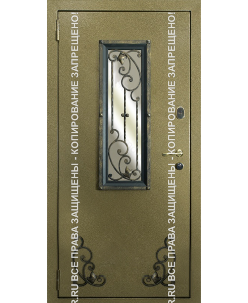 Металлическая входная уличная дверь Порошок с ковкой/стеклом 1131