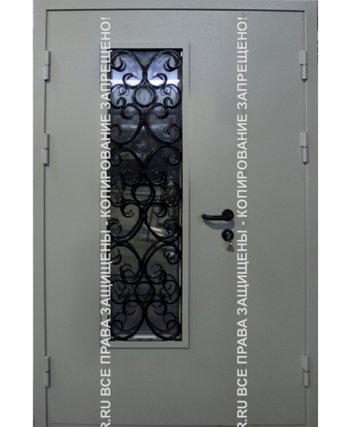 Железная входная уличная дверь Порошок с ковкой/стеклом 1129